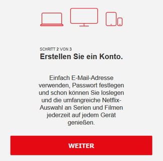 Im nächsten Schritt müssen Sie ein Netflix-Konto anlegen. Geben Sie dafür Ihre E-Mail-Adresse und ein Passwort ein, nachdem Sie erneut auf