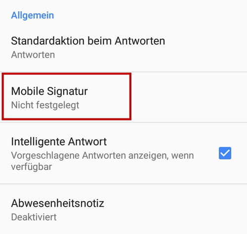 Wählen Sie das Google-Konto aus, für das Sie eine Signatur erstellen möchten. Scrollen Sie danach nach unten und tippen Sie auf