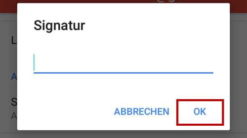 Geben Sie nun den gewünschten Signaturtext ein und bestätigen Sie mit