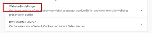 Website-Einstellungen aus: