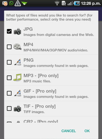 OK und warten Sie, während die App Dateien sucht, die wiederhergestellt werden können: