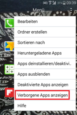 Um die versteckten Apps anzuzeigen, gehen Sie wieder in das Menü und wählen dort