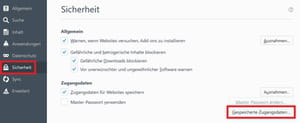 Gespeicherte Passwörter erscheinen nun alle Webseiten, auf denen Sie sich angemeldet und das Passwort gespeichert haben. Klicken Sie auf eine der Seiten, sehen Sie dort den jeweiligen Benutzernamen und das Passwort versteckt hinter schwarzen Punkten. Klicken Sie auf