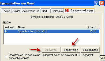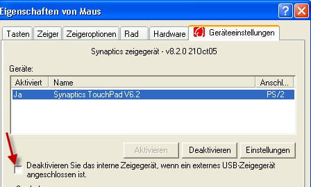 Touchpad deaktivieren, wenn eine USB-Maus angeschlossen ist