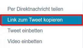 Rufen Sie das Menü des Tweets auf und klicken Sie auf