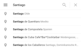 Santiago in das Suchfeld schreiben, werden die folgenden Ergebnisse angezeigt: